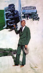 Roy’s candy-colored art of past, present and future projects enlivened General Dynamics reports, brochures and proposals for over two decades. Roy’s paintings are loose, almost cartoony but beautifully composed.