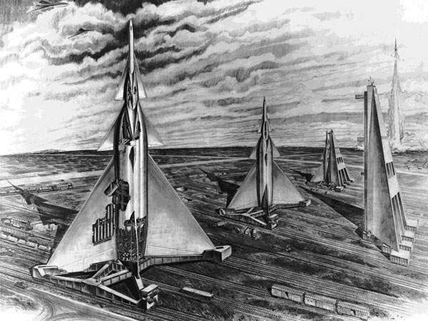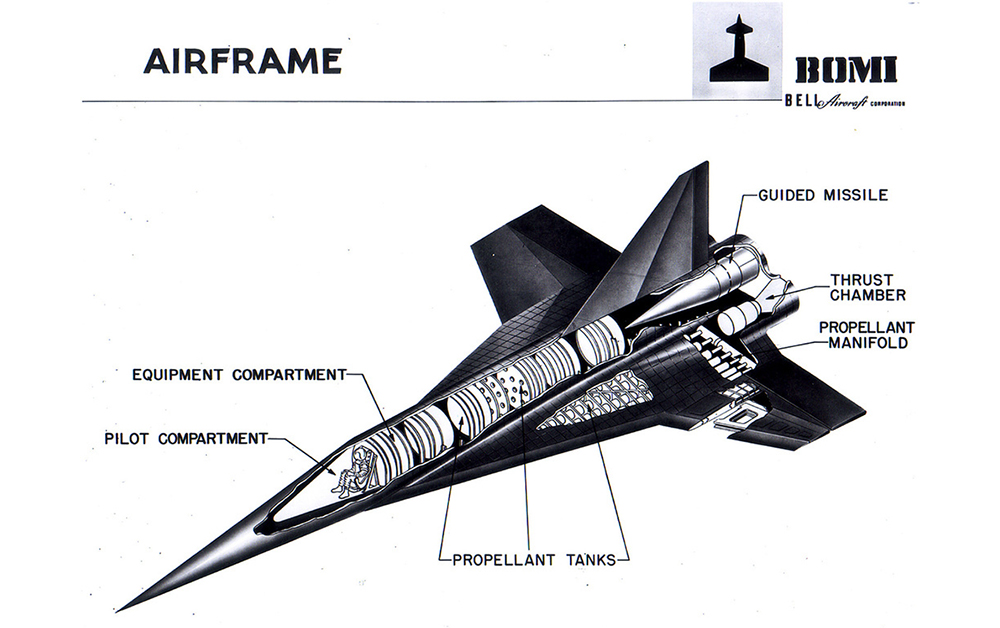 In 1952, Walter Dornberger and Krafft Ehrikke at Bell Aircraft proposed a vehicle based on Sanger and Bredt’s research. Dornberger had led Nazi Germany’s V-2 program and other projects at Peenemünde, where Ehrikke had worked as a propulsion engineer. In essence, their proposal was a vertically launched version of the Silbervogel, known as Bomber Missile or Bomi. By 1956, BoMi had evolved into three separate programs: