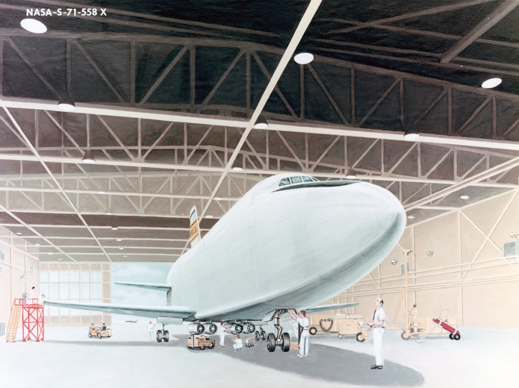 A view of a model of the first stage of a two-stage horizontal takeoff and landing vehicle designed to place shuttle class payloads in low earth orbit. The model will be used in launcher studies by the Aeromechanics Division of the Flight Dynamics Laboratory.