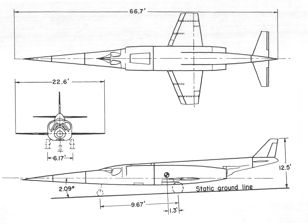 Figure 2.- Three-view drawing of the Douglas X-3 research airplane.