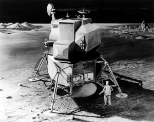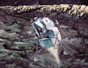 From Drew Granston‘s collection: a beautiful early rendering of Grumman’s LM by Craig Kavafes.