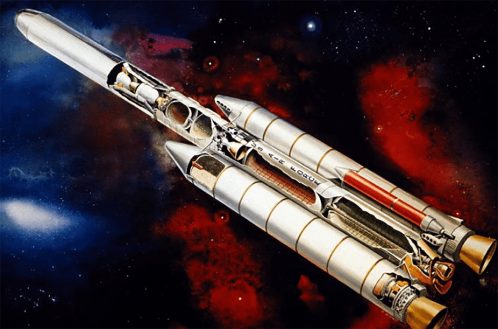 Artist’s concept of the Titan standard launch vehicle 34-D entering the space.