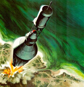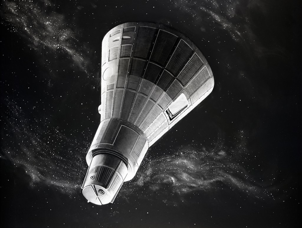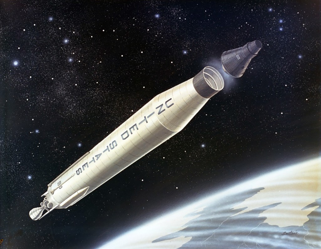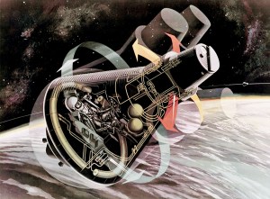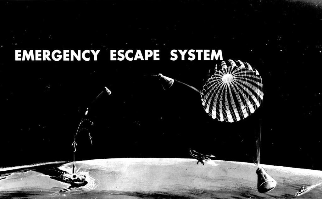 Top view – Artist conception of the Mercury-Atlas 5 emergency escape system. Bottom view – The orbital flight plan of the Mercury-Atlas 5, showing visually the sequence of events of launch and recovery of the spacecraft.