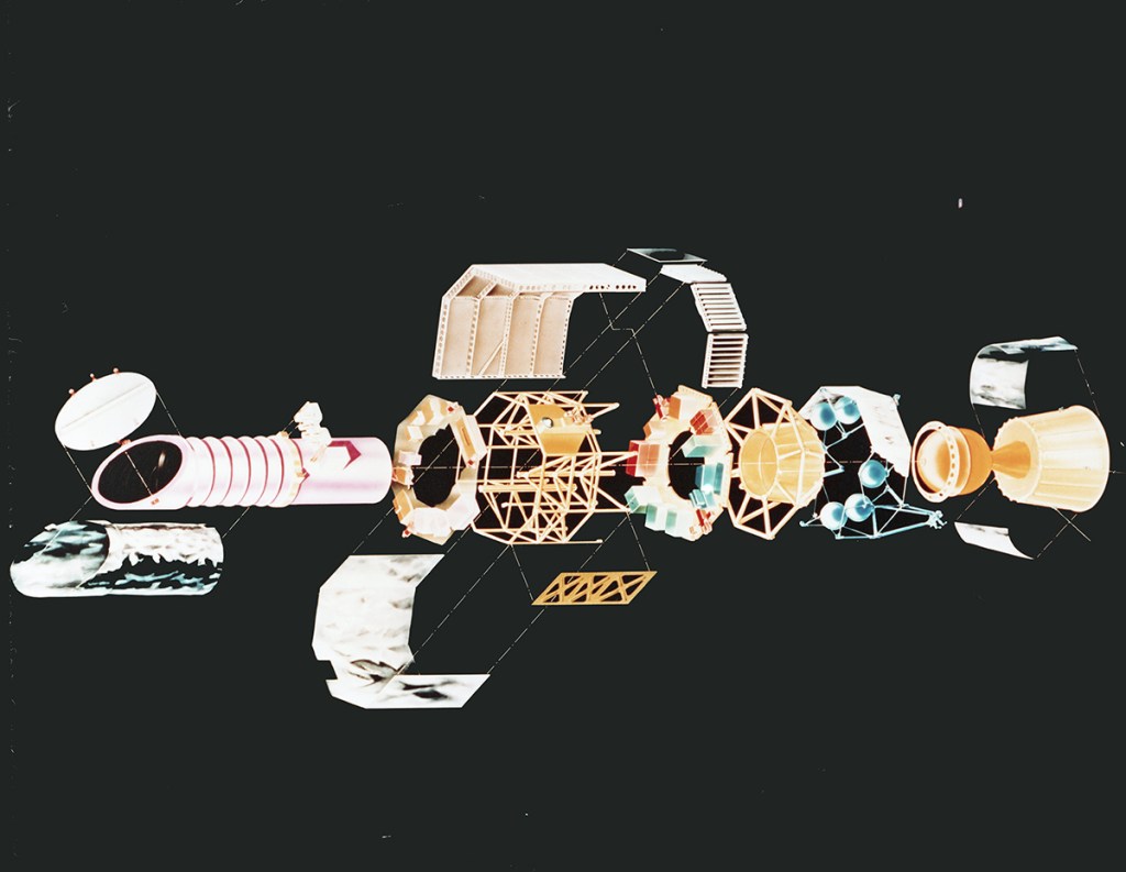 I don’t know the provenance of this image, all I can say is I picked it up on eBay. It’s mid-sixties and appears to depict a manned space telescope, and it’s gorgeous. So it will live here in the grey bin until I come across any information that will make sense of it.