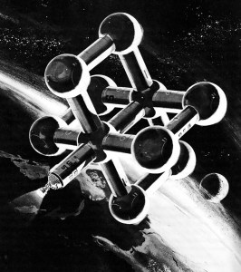 Huge space ferries are used by astronauts to perform the final assembly of the huge Spaceball orbiting station.