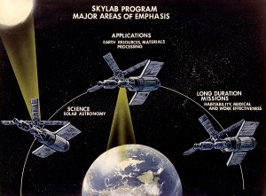 ORBITAL WORKSHOP — Artist’s concept showing how a Saturn S-IVB stage will appear when converted to the Apollo Applications Orbital Workshop. Launched fully fueled with airlock and docking adaptor attached, the S-IVB’s liquid hydrogen tank becomes a shirtsleeve environment workshop after the fuel has been depleted. At left is an Apollo Command and Service Module launched separately and docked into one of the docking adaptor’s ports. The Apollo Telescope Mount is shown docked into one of the side ports. The ATM will be joined to the cluster in a second phase of the program. Solar cell “wings” to provide power fold outward from the S-IVB after orbit is achieved. McDonnell Douglas Corporation’s Missile and Space Systems Division is making the S-IVB orbital workshop modifications under contract to NASA Marshall Space Flight Center and McDonnell Astronautics Company is developing the airlock under contract to MSC. (MCDONNELL DOUGLAS PHOTOGRAPH)