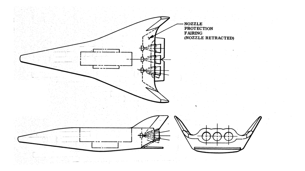 Final evolution of the Lockheed LS-200-5 lifting body stage-and-one-half configuration under NASA Space Shuttle Alternate Concepts contracts in December 1970.