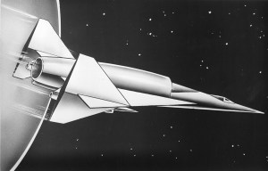 This drawing from the magazine Air Force and Space Digest shows a proposed NASA “ONE-STAGE-TO-ORBIT” aerospace plane. The craft would be able to take off from a regular airport using turbojet engines, then switch to ramjet propulsion at supersonic speed. To reach orbital speed in space, the aerospace plane would use a third set of engines using rocket propulsion.