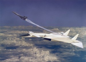 A view of a model of the first stage of a two-stage horizontal takeoff and landing vehicle designed to place shuttle class payloads in low earth orbit. The model will be used in launcher studies by the Aeromechanics Division of the Flight Dynamics Laboratory.